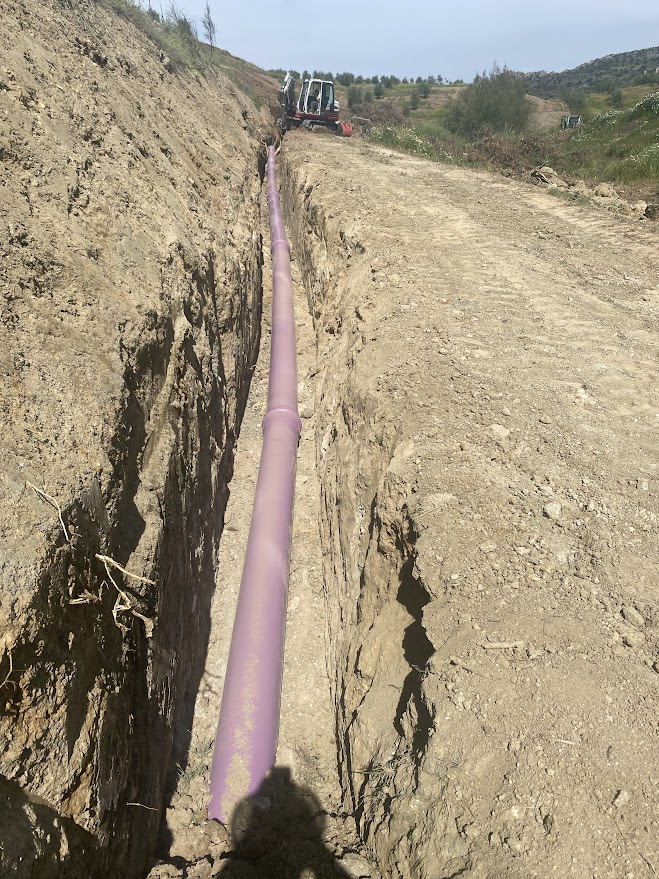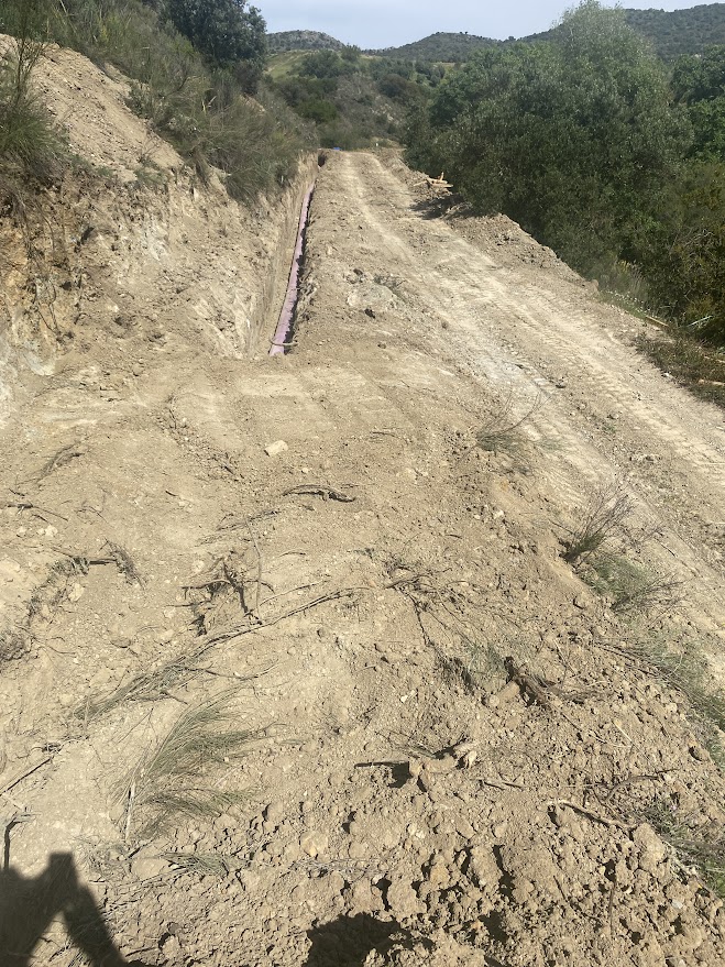 Imágenes del paso de carretera a cielo abierto realizado en el punto kilométrico 4,5 de la carretera vecinal CV-8209 de Priego de Córdoba a Fuente Alhama, llevado a cabo para la colocación de uno de los ramales de la red de tuberías de la Comunidad de Regantes.