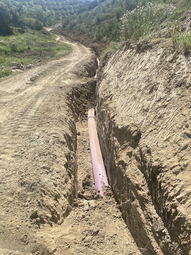 Las fotografías corresponden a la instalación de la red de tuberías de la Comunidad de Regantes, en el Carril del Soto ubicado entre la carretera CV-8209 y el río Zagrilla. La colocación de todas las tuberías de este tramo, se acometió por el lateral del carril por deseo expreso de los propietarios de la finca, con el fin de mantener despejado su trazado para permitir el paso de maquinaria y vehículos durante la obras y no deteriorar el buen estado de conservación del mismo.
