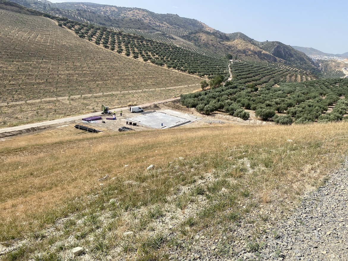 Fotografías realizadas el 09/06/2025 del estado de las obras de la balsa ubicada en la finca "El Sanchón" próxima a la población de El Cañuelo, con capacidad para 300.000 metros cúbicos de aguas regeneradas provenientes de la Estación Depuradora de Aguas Residuales de Priego de Córdoba.